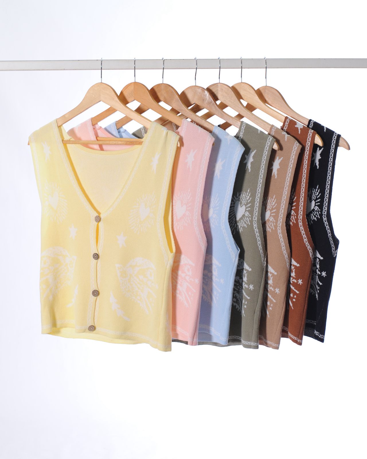 amarillo, beige, celeste, marron, negro, rosa
